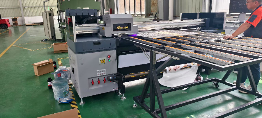 您的位置:主页 > 客户案例 >安徽滁州客户密码柯1.8米6头3200UV网带打印机全彩模式打印无纺布材料装机调试完成