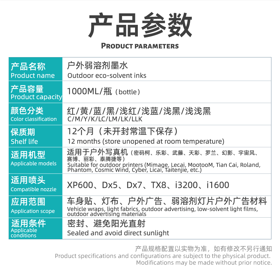 MIMAGE户外UV墨水 无味速干环保喷头通用防水白彩光油 UV墨水