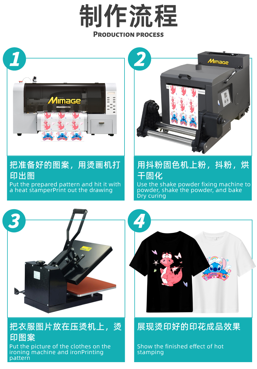 MIMAGE A3 DTF 30CM白墨烫画抖粉机T恤服装布料图案个性定制打印机