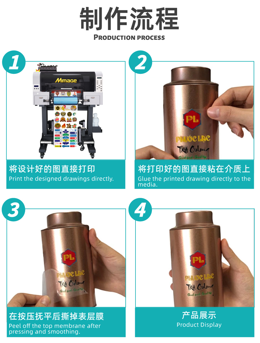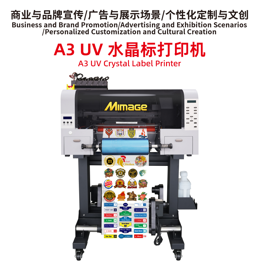 MIMAGE 水晶标A3 UV DTF打印机酒瓶盒子logo标签打印机冷转贴