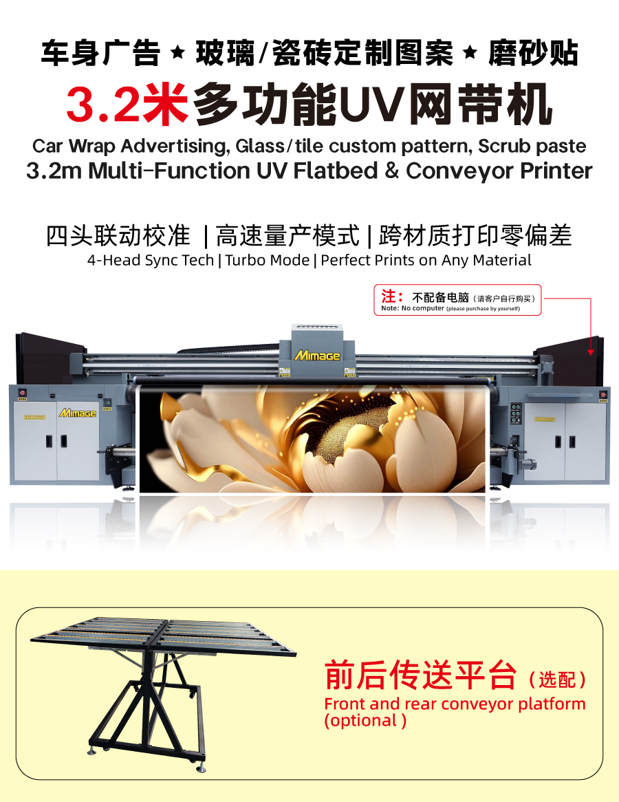 MIMAGE 3.2米UV网带机广告皮革灯箱软膜玻璃贴彩白彩打印