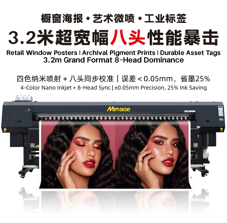 MIMAGE 3.2米八头四色喷绘写真一体机宣绒布油画布汽车拉花打印